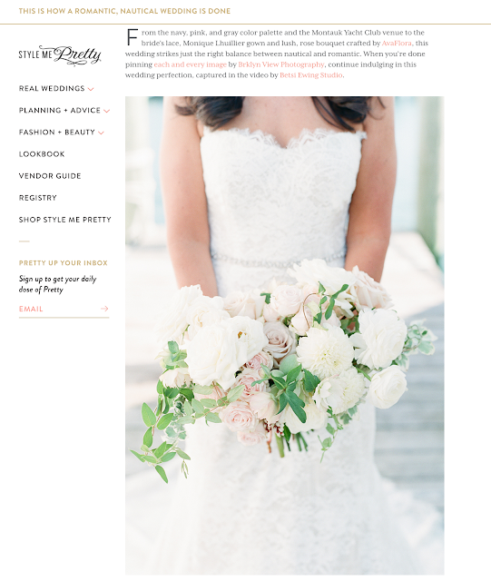 From the very first moment Jessica met John, she knew he was the one. They met at a small bistro in Brooklyn Heights and quickly became exclusive. During their courtship, they spent a lot of time in Montauk so when John proposed, they knew they wanted to celebrate their marriage in their favorite place in New York. The couple chose the stunning Montauk Yacht Club Resort and Marina for their nautical chic inspired wedding. Jessica's wore the most delicate and detailed Monique Lhuillier wedding dress I have ever seen. The intricate layers of tulle, lace, and silk fit her like a glove. She wore cream colored crystal encrusted Manolo Blahnik shoes and carried her grandmothers beaded clutch for her something borrowed. The couple prayed for good weather and the heaven's did not disappoint.