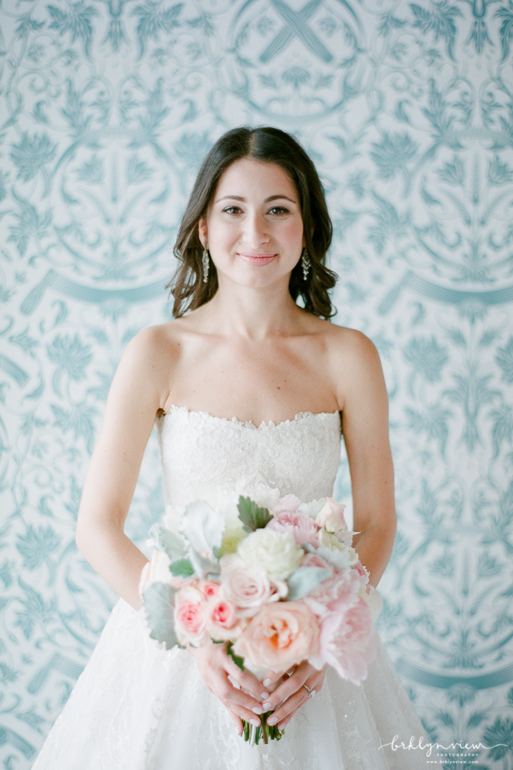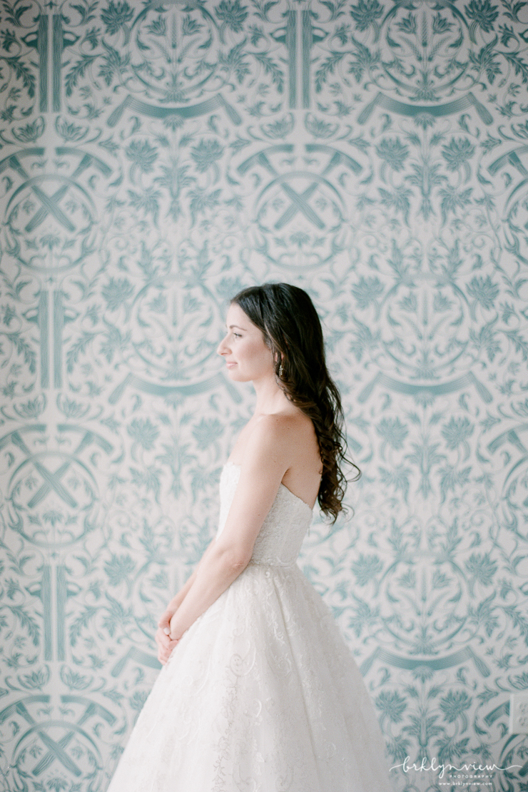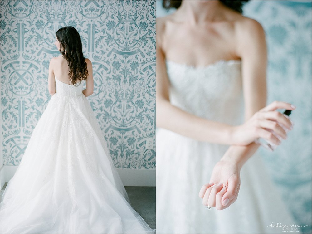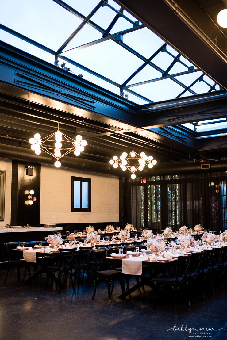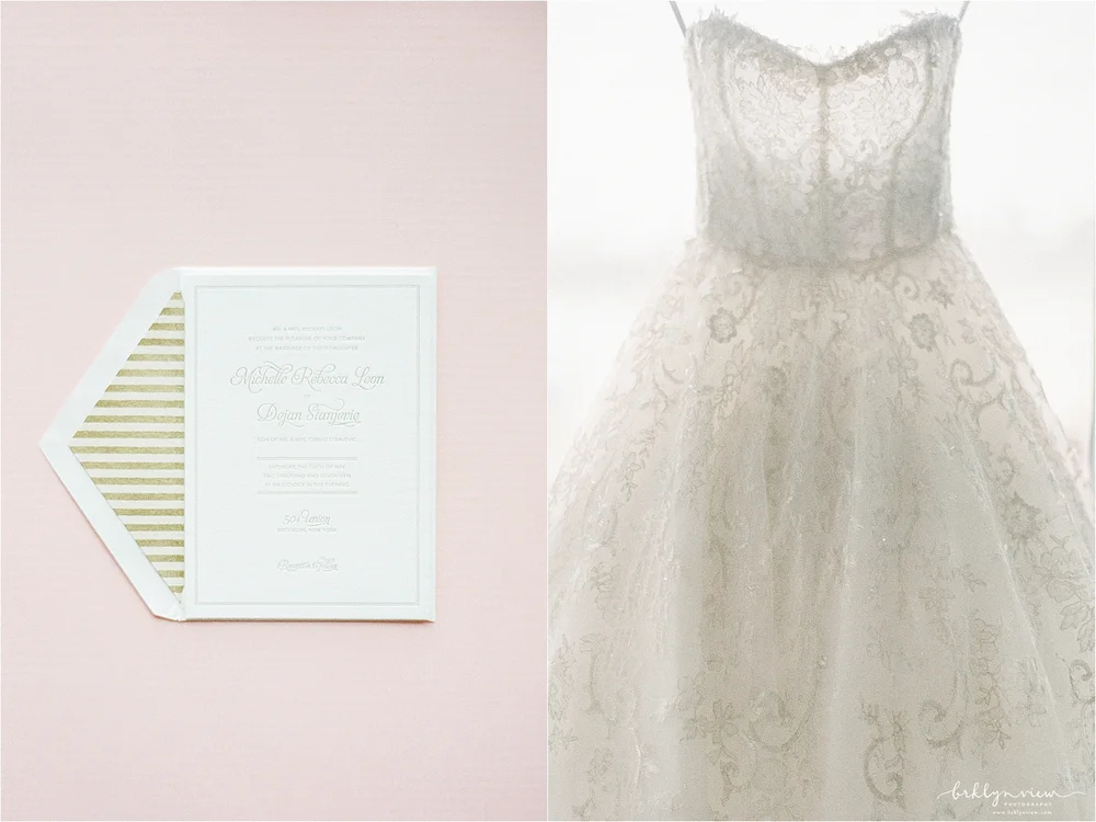 They day before Michelle and Dejan's wedding at 501 Union in Brooklyn, it down poured in New York City. However, on their wedding day, the rain held off, sun came out and as soon as their wedding ceremony was over, the skies opened up and showered Brooklyn again. Phew, we just made it! Michelle and her bridesmaids got ready at the ever chic Wythe Hotel in Williamsburg, Brooklyn. It is one of my favorite hotels for bridal prep because the light, the location and the decor all make for spectacular getting ready photos. The bride wore a delicate lace wedding gown from Monique Lhuillier and blush satin Jimmy Choo shoes.