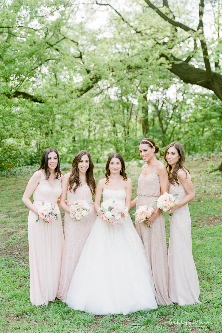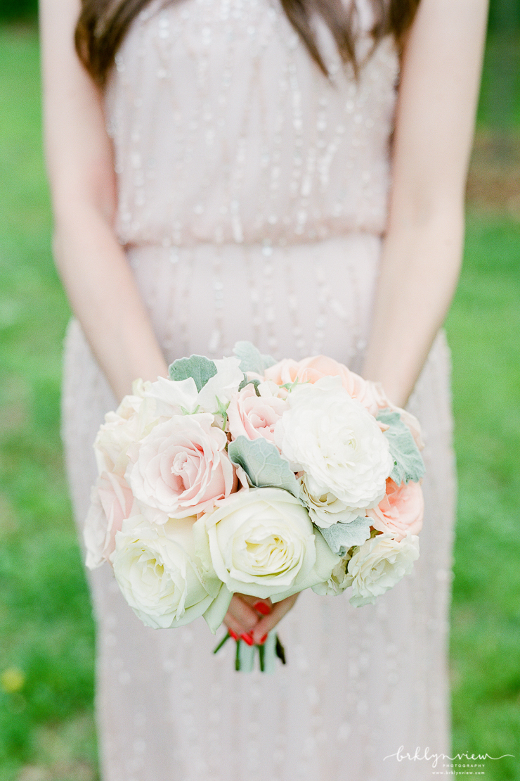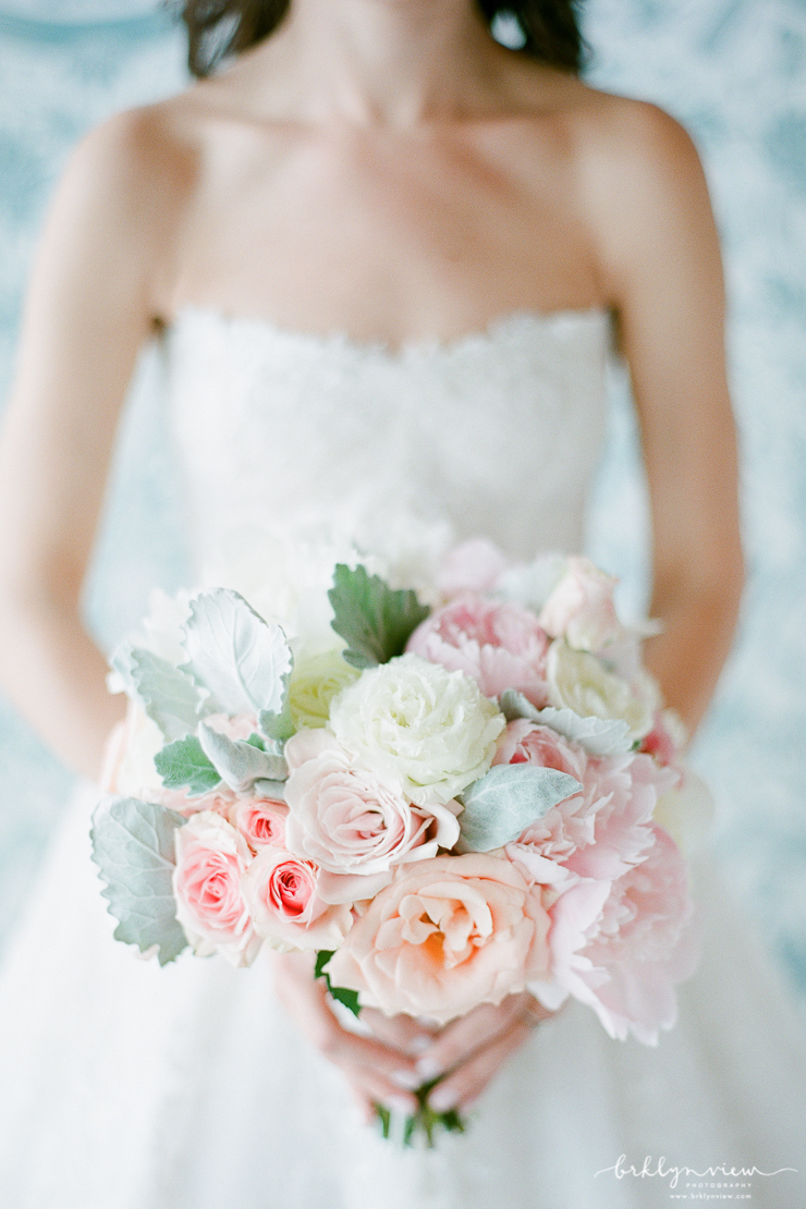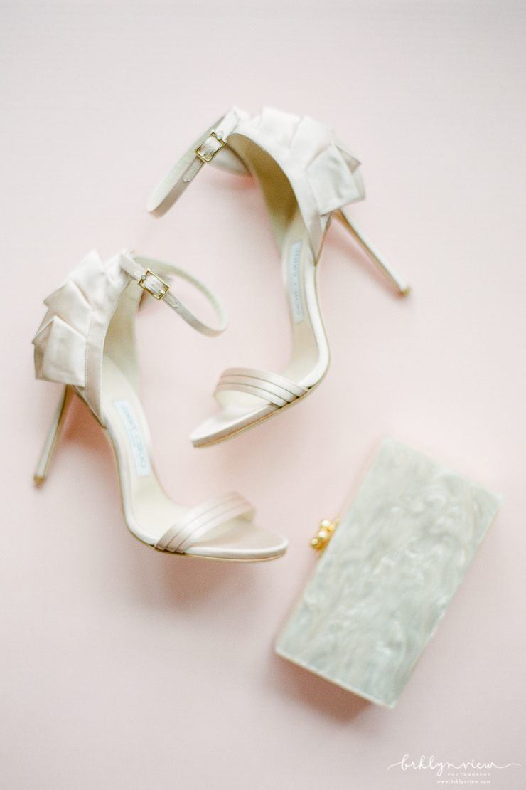 They day before Michelle and Dejan's wedding at 501 Union in Brooklyn, it down poured in New York City. However, on their wedding day, the rain held off, sun came out and as soon as their wedding ceremony was over, the skies opened up and showered Brooklyn again. Phew, we just made it! Michelle and her bridesmaids got ready at the ever chic Wythe Hotel in Williamsburg, Brooklyn. It is one of my favorite hotels for bridal prep because the light, the location and the decor all make for spectacular getting ready photos. The bride wore a delicate lace wedding gown from Monique Lhuillier and blush satin Jimmy Choo shoes.