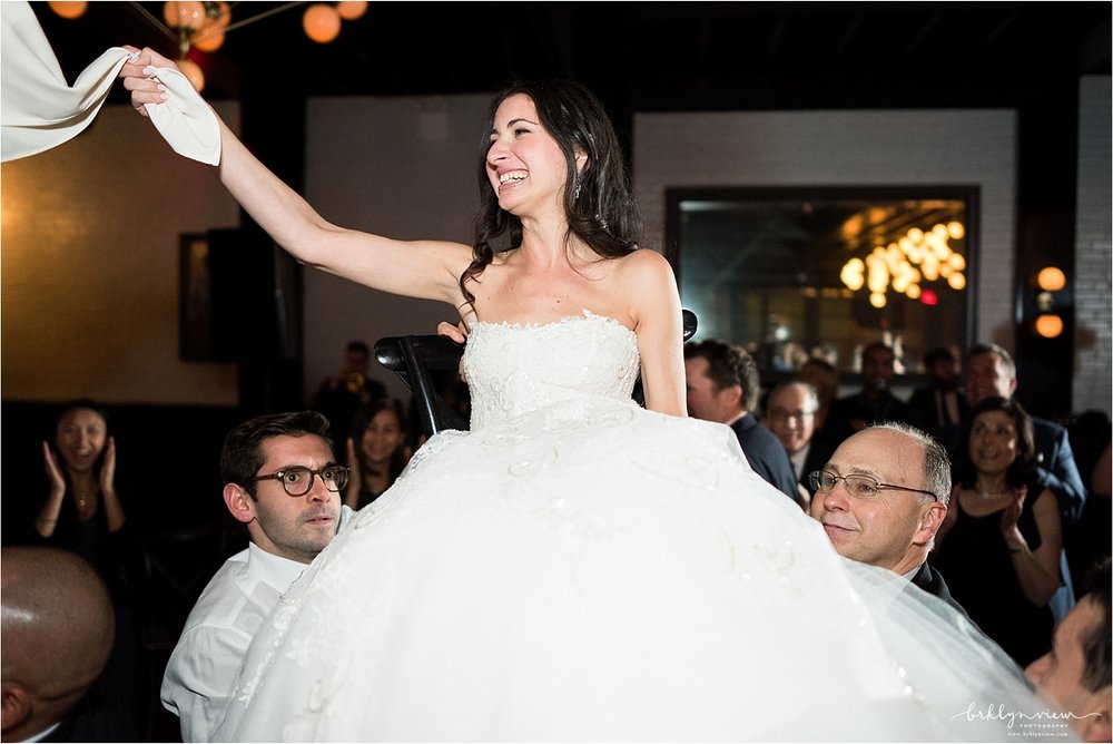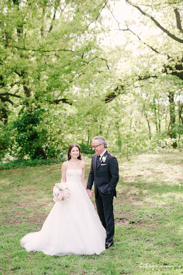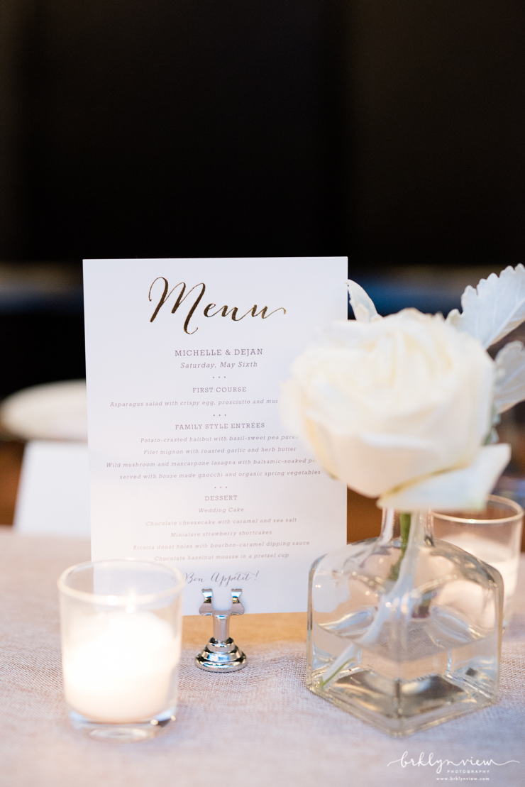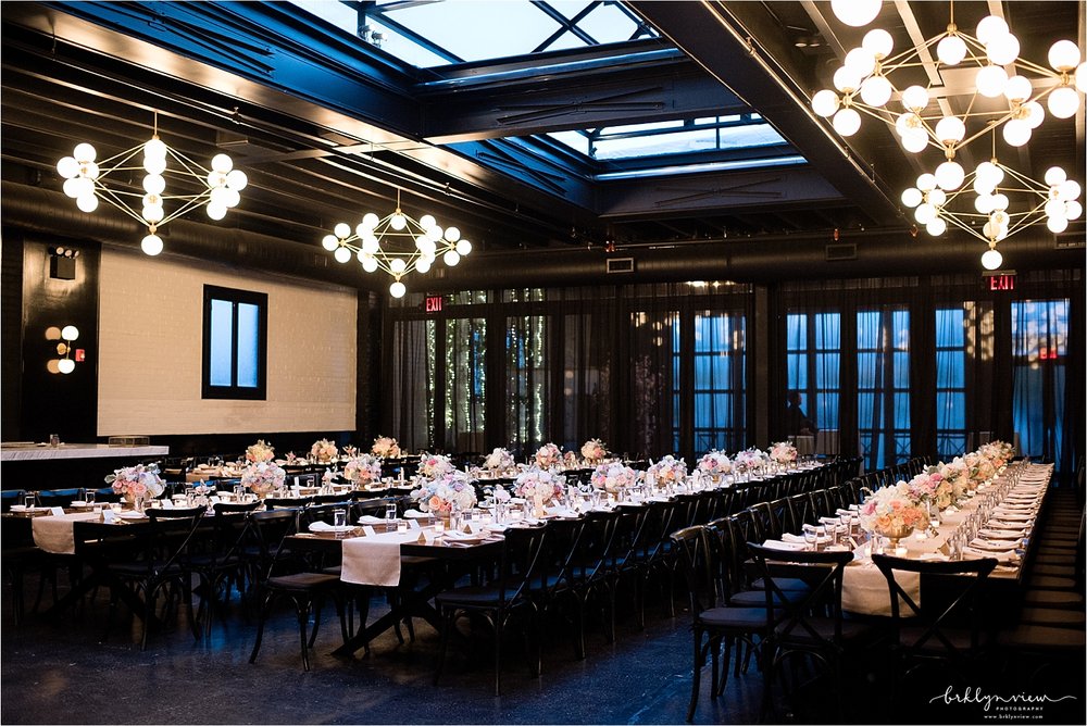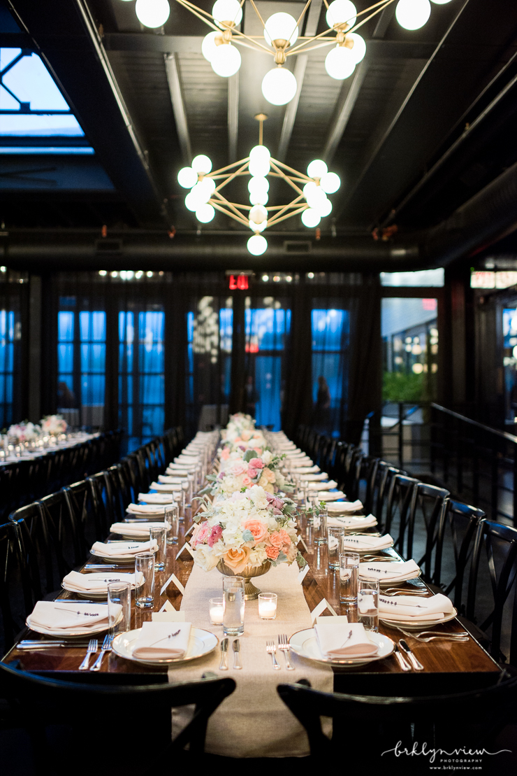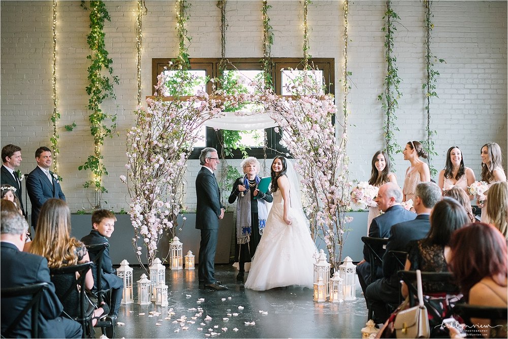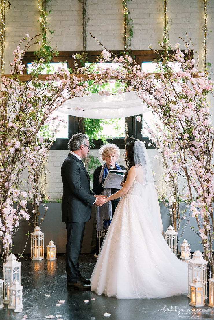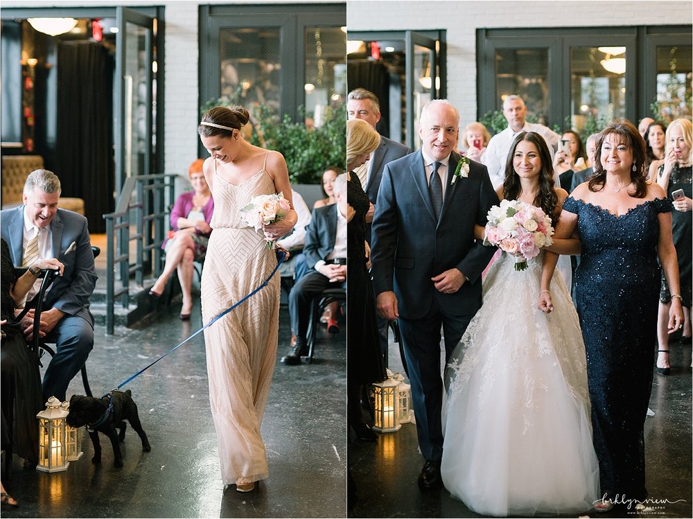 The Groom got ready with his best man at the couples apartment in Manhattan before meeting us at the hotel. The couple shared their first look by The William Vale hotel, before we headed over to Prospect Park for more wedding photos. The couple hired the amazing team of Whimsy Weddings to be their wedding planner, coordinator and floral designer. The entire wedding was simply gorgeous! Inside 501 Union, Michelle and Dejan stood under a Chuppah made of gorgeous pink cherry blossoms as they said their vows and became husband and wife. Their dog Nico even made a guest appearance as he walked down the aisle with one of Michelle's bridesmaids - so cute!